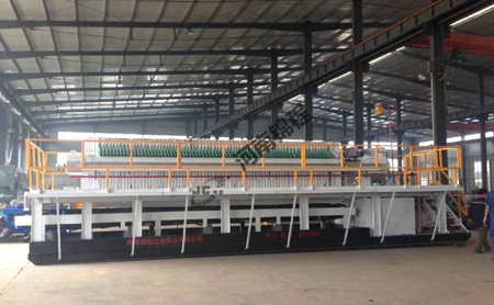 支撐整套設(shè)備裝置和重量,基架的重力使整臺裝置重心下降,增強(qiáng)了穩(wěn)定性,基架與地接觸面增大,減少了在松軟地面上的不均勻下沉,基架也提高了吊裝強(qiáng)度,保證了安全性。導(dǎo)料板、液壓站等均集中于基架上,布局合理,結(jié)構(gòu)緊湊,節(jié)省占地,使現(xiàn)場井然有序。