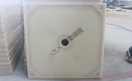 濾板是壓濾機的核心過濾元件。濾板材質、形式及質量的不同,會對整機的過濾性能產生不同的影響。其進料徑,濾點的分布(過濾通道)及其出水通道,對不同物料有不同的設計方案。濾板采用來自于歐盟的TPE彈性體及燕山石化的顆粒狀聚丙烯,并添加耐溫材料制造,具有耐熱性強、承壓力大、使用壽命長等特點,此項約增加濾板成本25%.