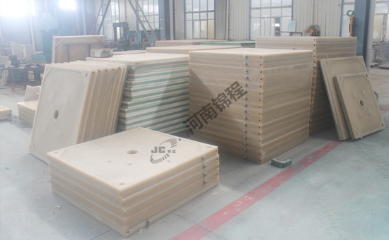 濾板全部為數控加工中心加工,其精度高出標準數倍,高于德國DIN標準的兩倍,濾板生產中由于外界溫度的不同而產生不同的收縮,至使濾板的外形尺寸誤差高可達3mm,景津對所有濾板外框四面全部經過加工并做腔室表面熱融處理,消除加工中的毛刺,提高了表面光潔度,大大延長了濾布的使用壽命,此項成本約增加每塊八十元,與按我國行業(yè)標準生產的濾板相比:過濾速度提高20%;密度、強度、抗疲勞度、抗老化程度提高一倍,其使用壽命可達10年以上。濾板進料壓力為1.6MPa。耐高溫高壓、防腐密封好、過濾周期短、沖洗效果好、濾餅含濕率低。