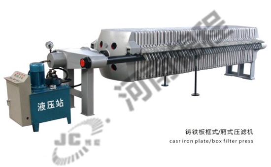 液壓部分:液壓部分是驅(qū)動(dòng)壓緊板壓緊或松開(kāi)濾板的動(dòng)力裝置,配置了柱塞泵及各種控制閥。